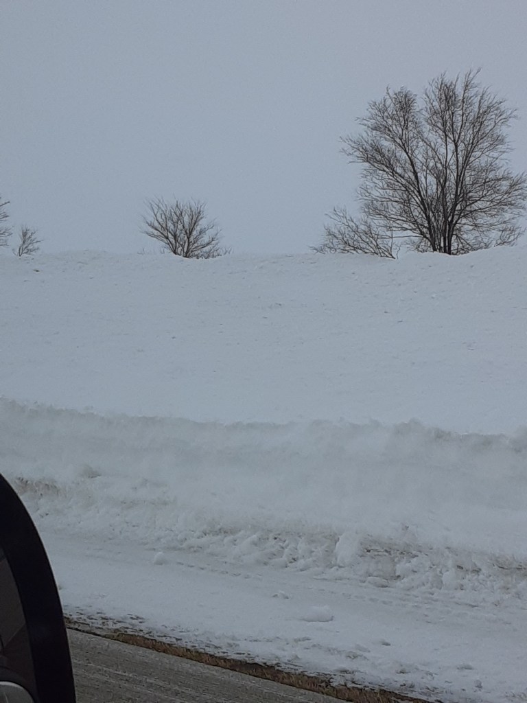 The forecasted snow held off longer than expected, but when it started it was coming down fast. We pulled off the road less than an hour after the snow began & are staying at a hotel in Jamestown. We saw some of the National Buffalo Museum’s Plains Bison just before our exit. They probably love the cold.