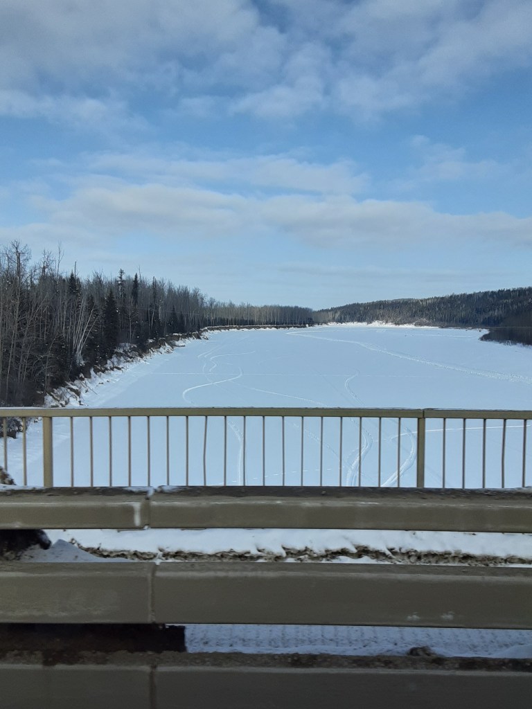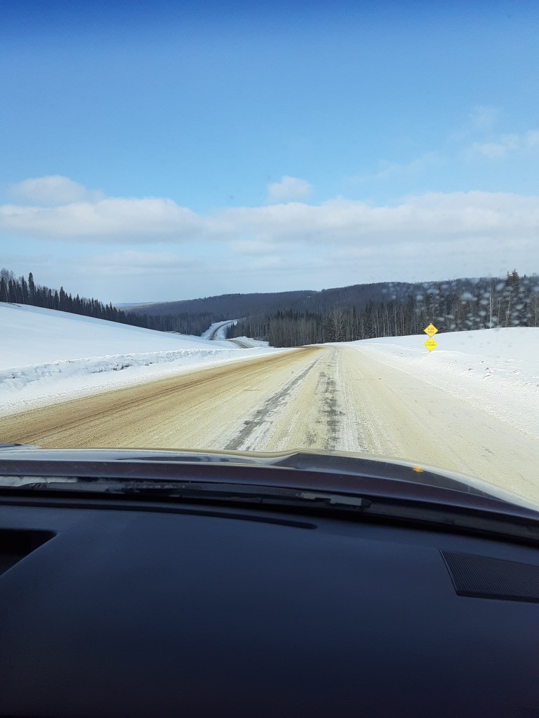 We have a new focus on fuel. Pulling the trailer has us plotting gas stop at least every 180 miles. Yesterday we contacted 4 gas stations between Fort Nelson and Watson Lake. 2 are open and currently have gas, while 2 are closed for the winter. If we fill up at both, we will be fine. (We are carrying a can with 5 gallons, just in case.)