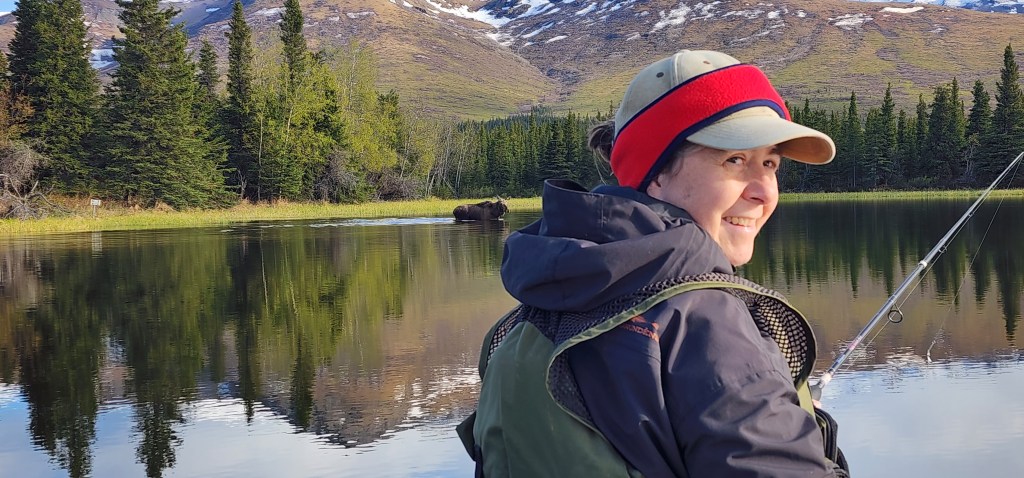 We headed to the nearby lake in a cold drizzle. For the first few hours it stayed overcast and drizzled. We didn’t get a single bite. We saw lots of birds & 2 moose at a distance which was neat. Then the sun came out, followed by this moose strolling through the water, then swimming and shaking off when she got to the other side! In addition to the beautiful photos here, I am sure C will eventually post his splendid videos to his Facebook page.