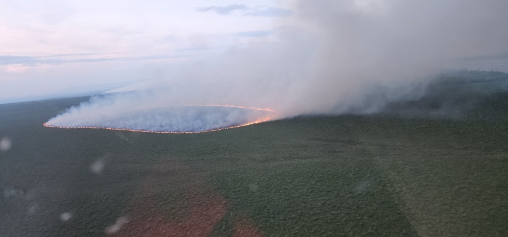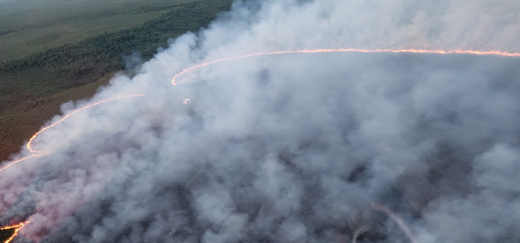 The windy conditions were lousy for a back burn, especially in the middle of the tundra with no roads. They needed 2 helicopters making bucket drops as they lit.