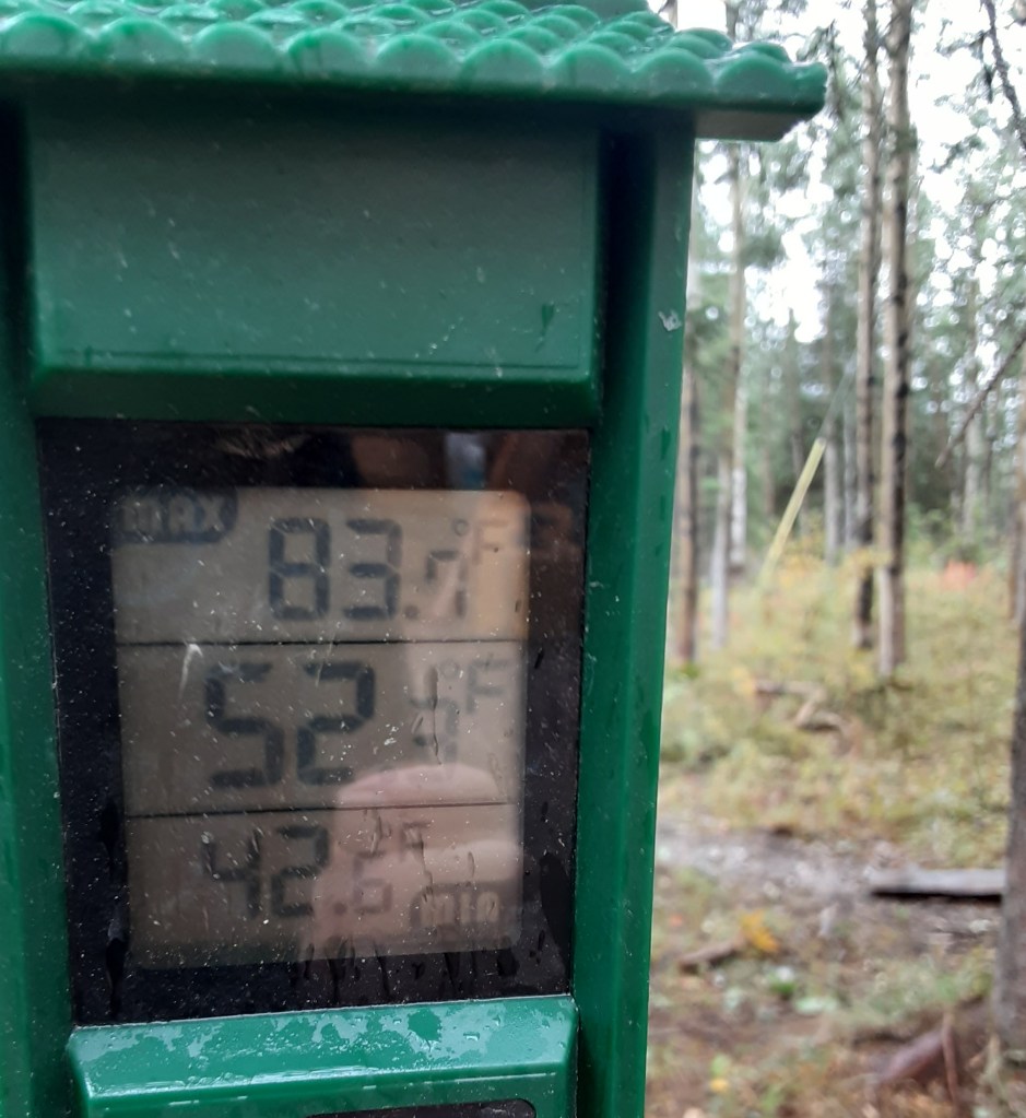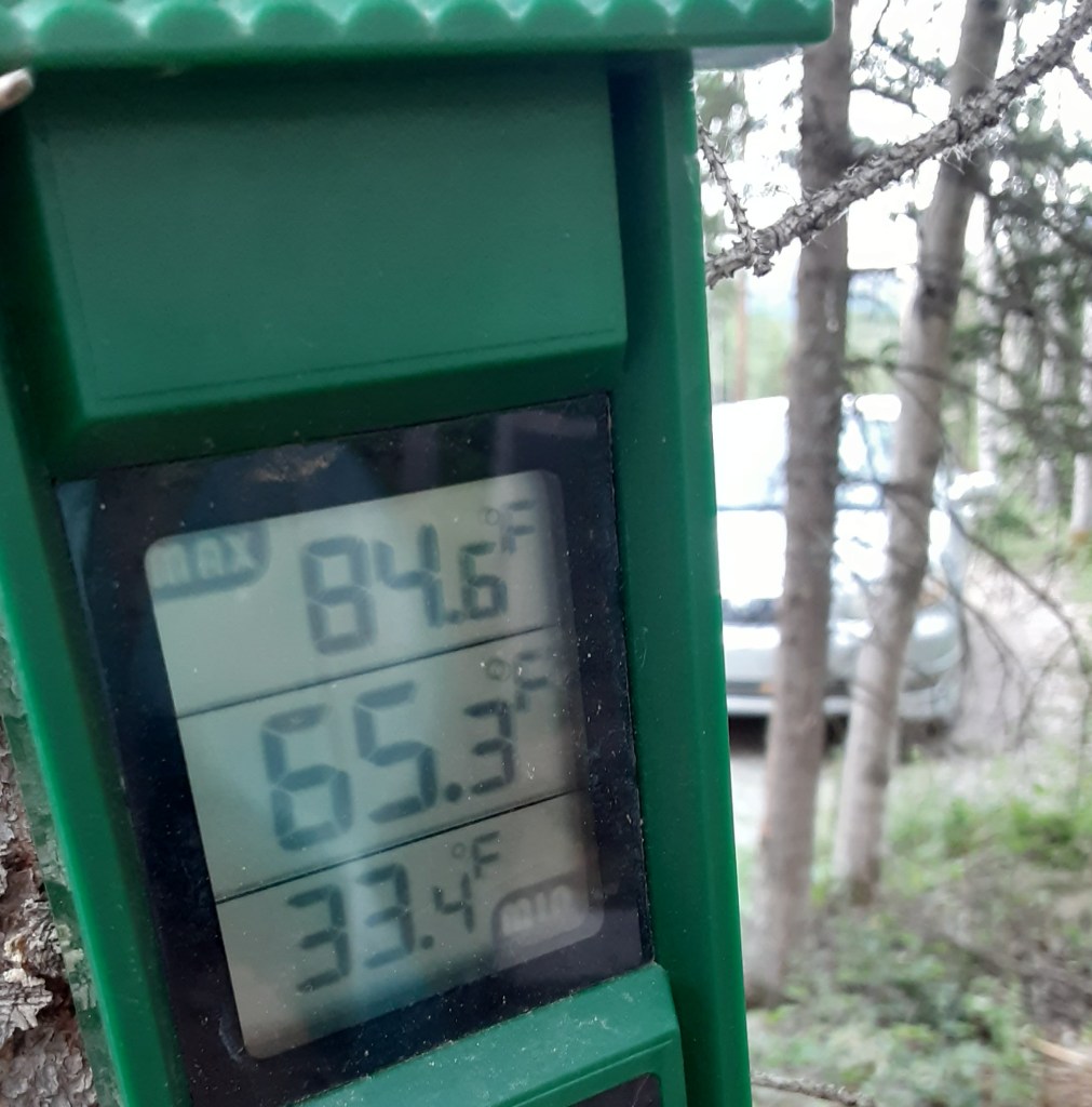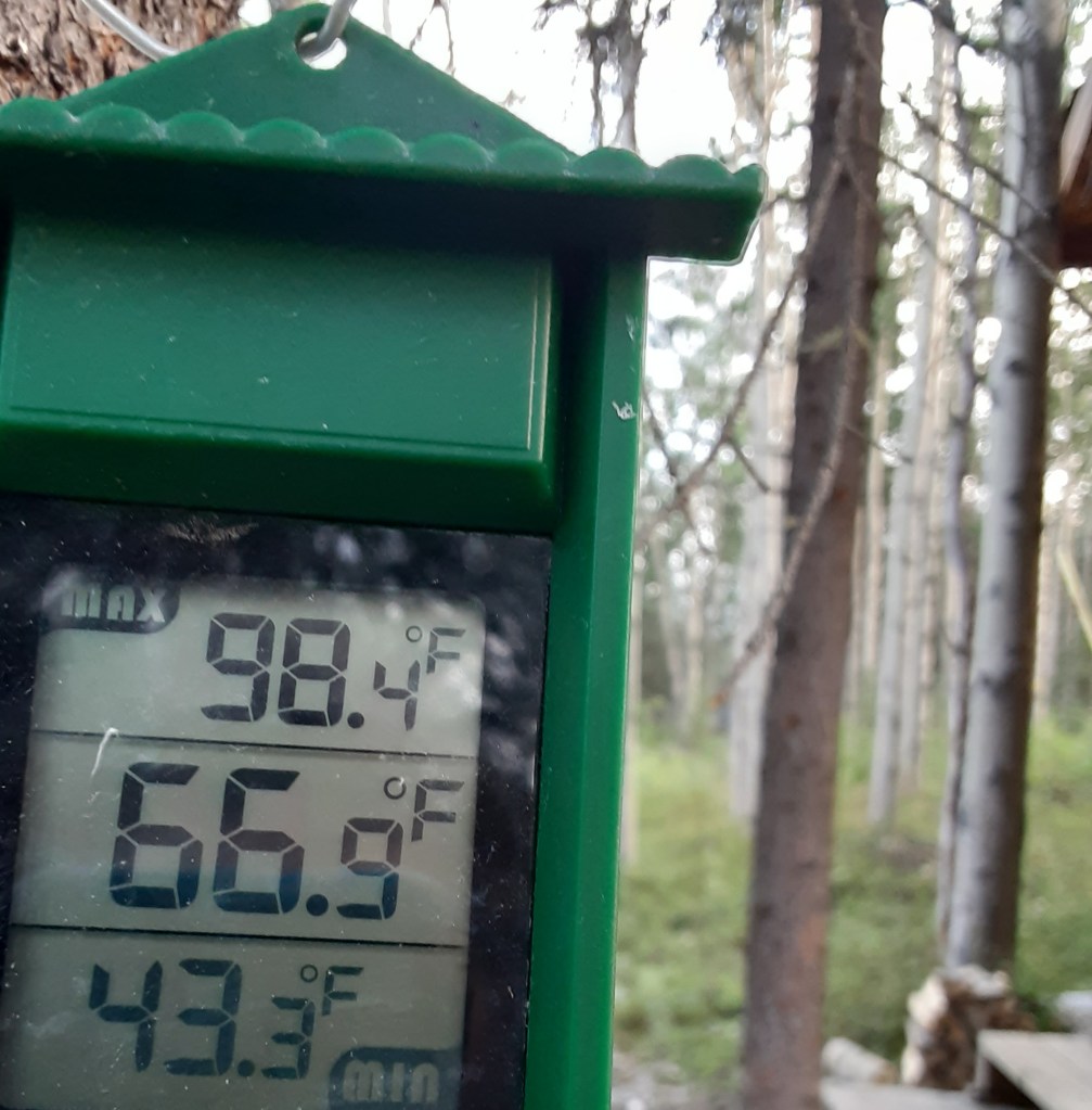 Here are the max/min thermometer reading for June, July and August. Highs are likely overstated as sun occasionally hits the thermometer.