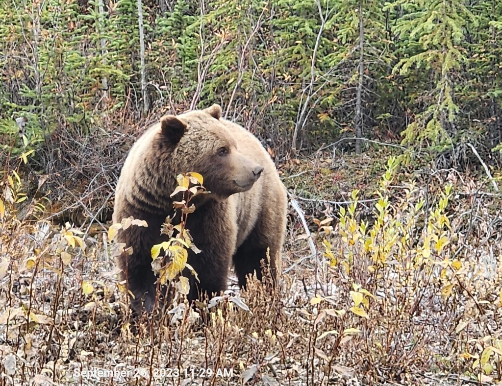 So much wildlife near the Alcan Highway today! We saw a grizzly bear, 29 dall sheep, a coyote, several pairs of swans, and lots of grouse.