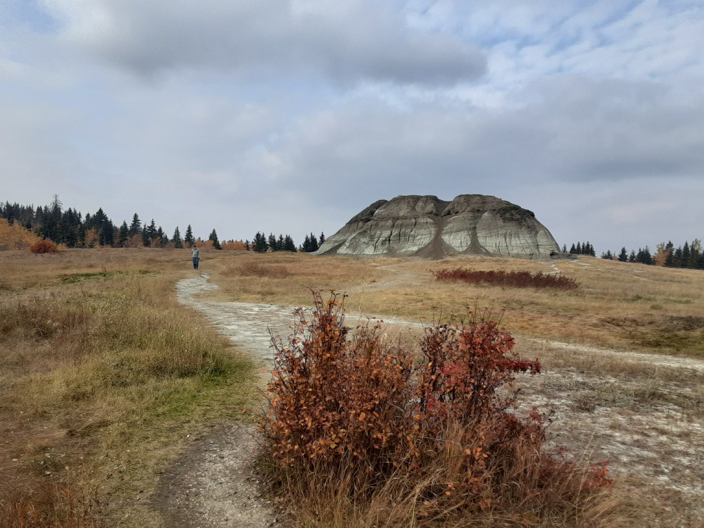 Our travel plan is to drive 6 “Google map” hours per day, which always takes us longer than 6 hours. I usually have a fun stop planned (usually a natural feature). For example, we have stopped at glaciers, salmon spawning streams, and yesterday some hoodoos. Today I didn’t have a plan, but when we both needed to pee, I noticed a small park and natural area were nearby and we ended up exploring the Kleskun Hills for an hour.