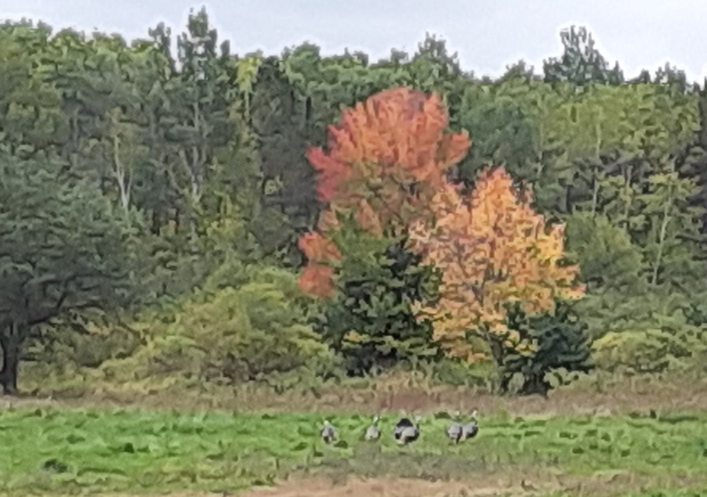 Wildlife for today was all turkeys, at least 14 in two separate flocks. We saw a moose crossing sign, but no moose. Fall colors aren’t as widespread as I was hoping, but there are some beautiful pockets of color.