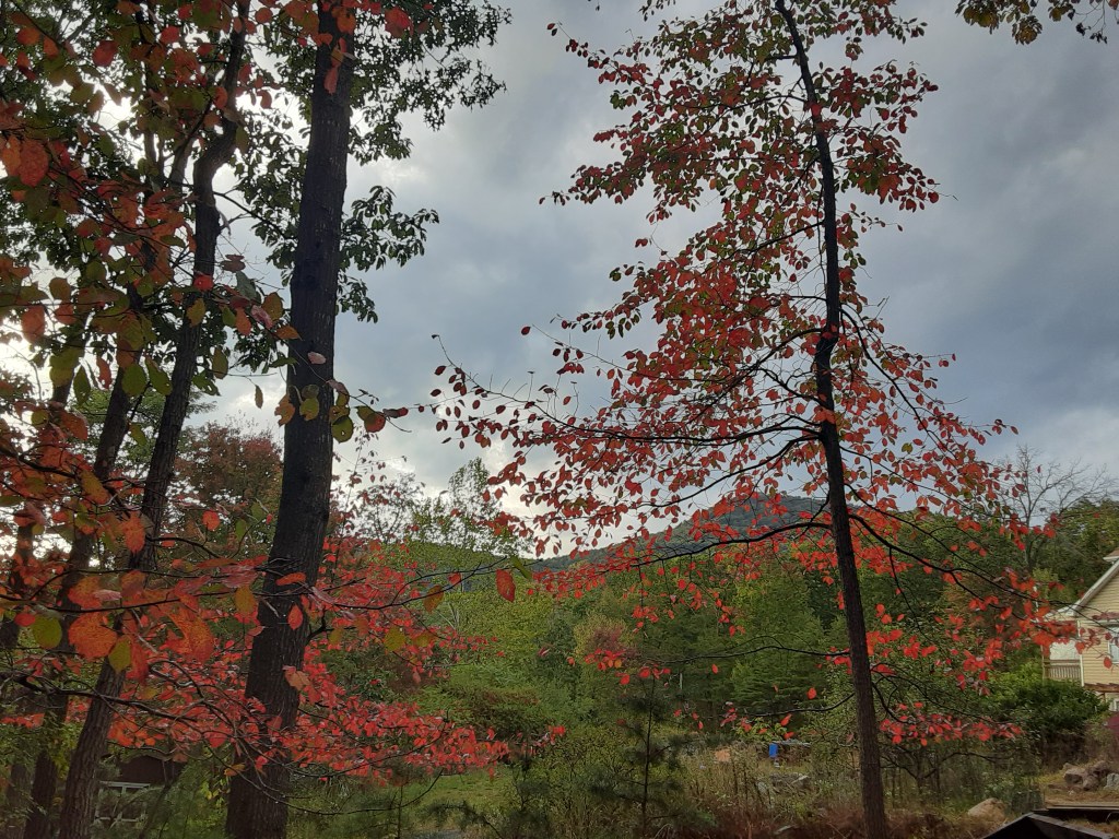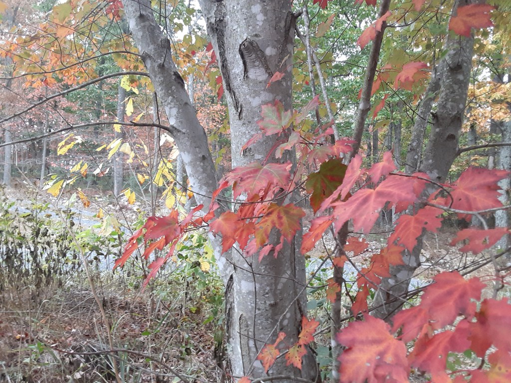 When we arrived in Virginia 2 weeks ago the black gum trees were red. Since then every day changes a bit – maples in red, orange and green; sumac in burgundy and red; hickory and birch in yellow. I wish my photos were as pretty as the woods.