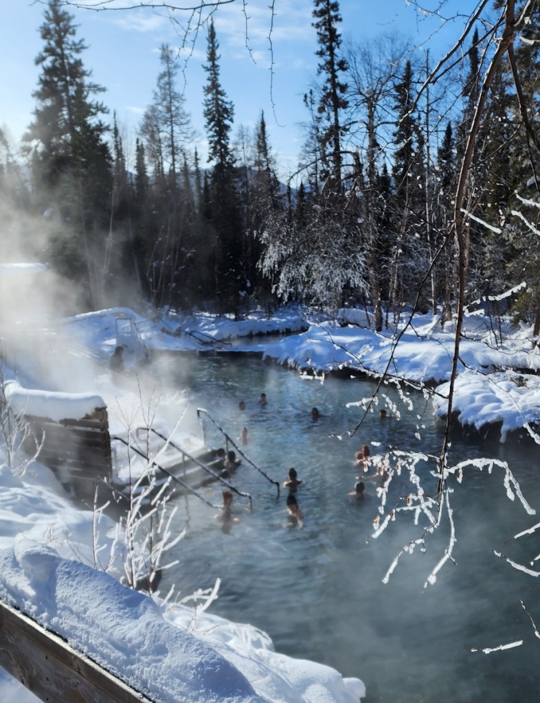 What is the coldest temp on our drive through Canada? See below for the coldest during the drive, though the second coldest day (negative 9F) we also went swimming at Liard Hot Springs (I think it was around 0F outside when we got in the hot water). Also see the second post for information on our coldest weather in Healy, (negative 24F).