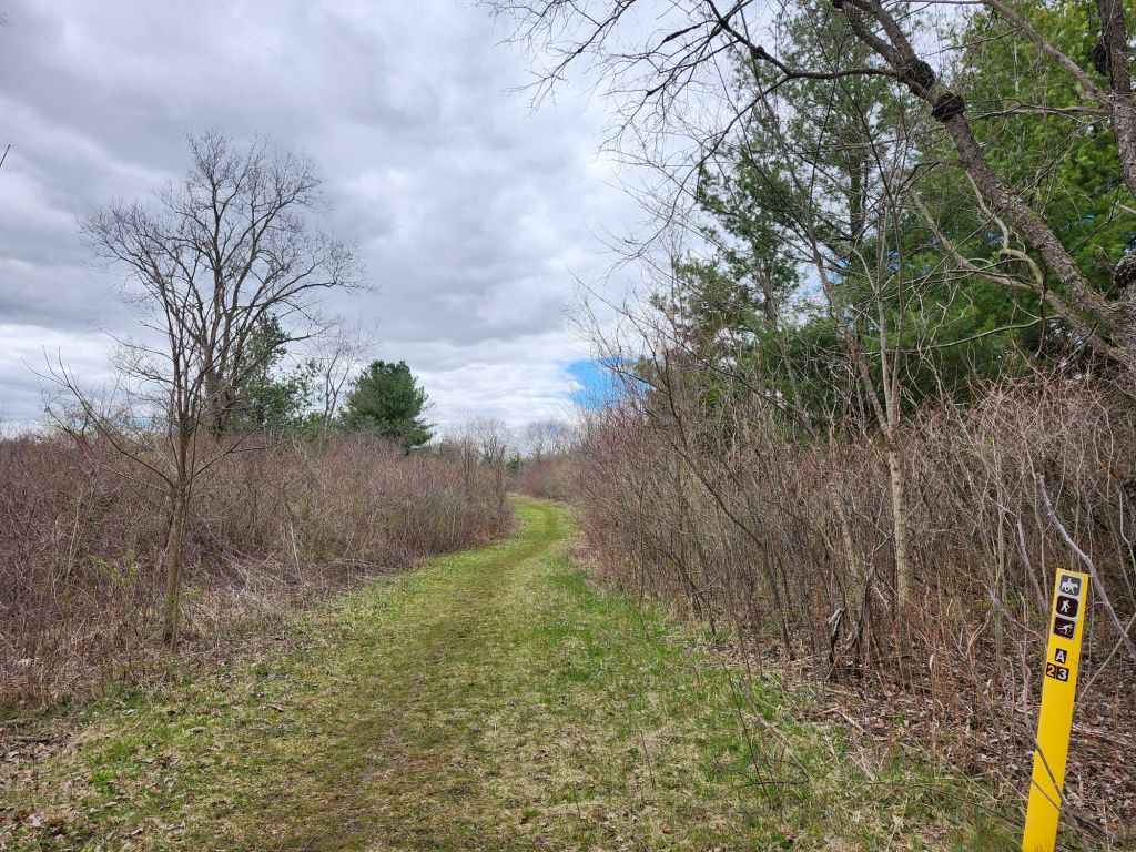Our fun stop for the day was Rock Cut State Park. We saw waterfowl on the lake, and I took a short hike hearing a great variety of birds singing in the woods. I hoped to see one of the several golden-crowned kinglets that Merlin (the birding app) told me were in the area, but no luck. If we stop in again I want to hike the interpretive trail through their prairie restoration, but it was mysteriously closed today. At least that gives me something to look forward to if we travel south to get around Lake Michigan.