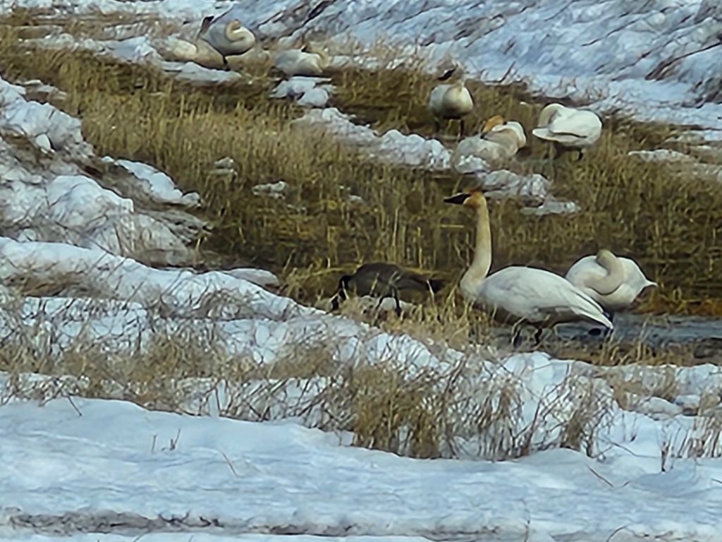 We stopped in Fairbanks for shopping and errands. Fortunately, one task took us directly past Creamers Field, so we took a few minutes to check out the migrating Swans that had paused there.