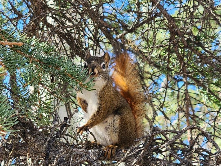 Our most common wildlife sighting is an adorable and talkative red squirrel living around our cabin.  Sometimes we get quite the scolding.