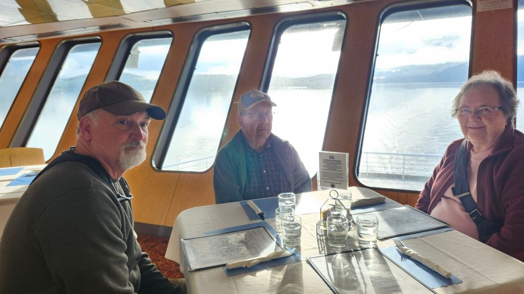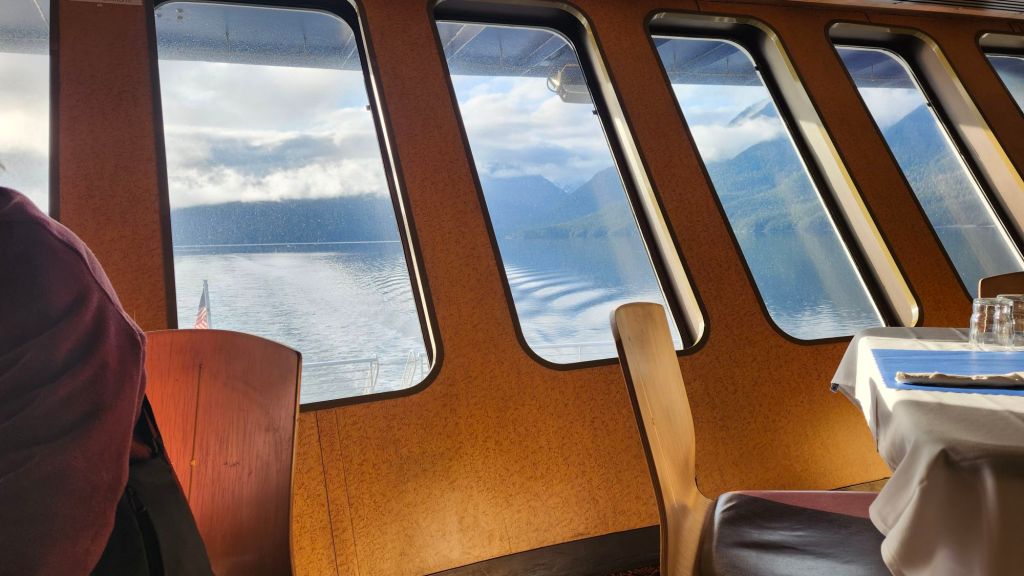 We enjoyed our first full day on the ferry, starting with breakfast in the dining room. The beautiful views made up for slow service as far as I was concerned. (C was hungry and wished he had his food sooner.) Random notes on the ferry follow: