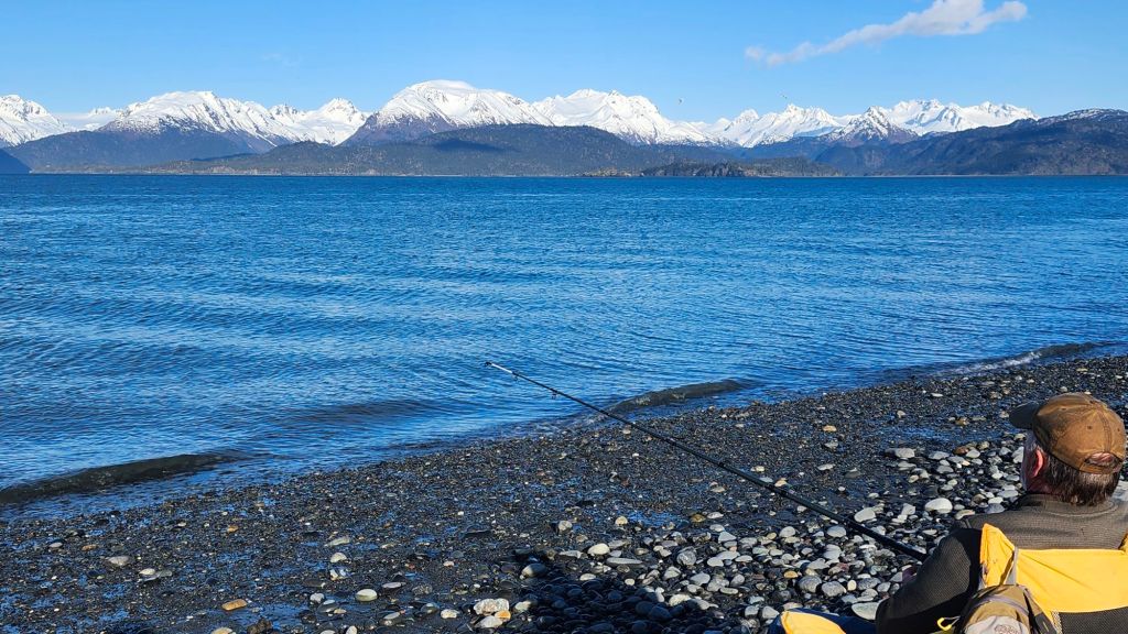 That evening we both went fishing and caught our lunch for the next day. We were hoping for halibut, but ended up eating sole and pollock instead.