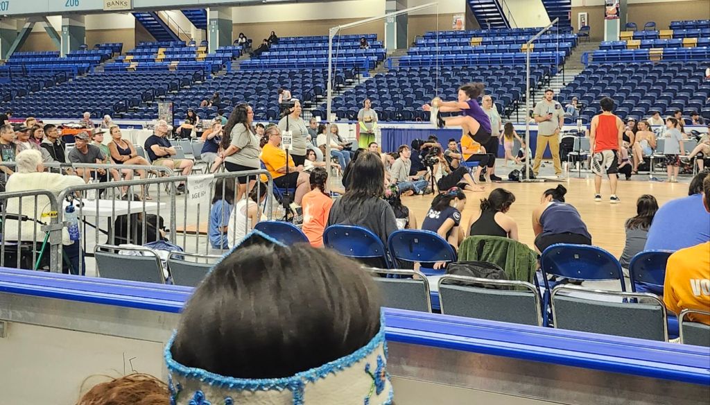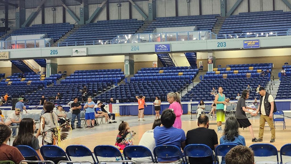 Today I was surprised to be at the World Eskimo Indian Olympics! When C made his Fairbanks doctor appointment, I thought the 2025 competition had been earlier in the month. At breakfast this morning, I overheard someone talking about WEIO and looked it up – today was day 3 of 4.