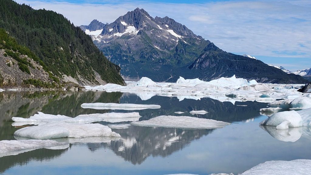 Last year we also hiked to the icebergs at Sheridan Glacier Lake, but the sky was never clear enough to see much of the glacier itself. This year we had much clearer weather while in Cordova and saw the impressive Sheridan Glacier from the road many times.