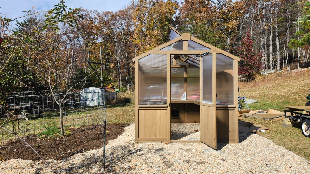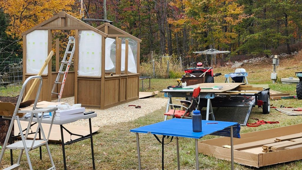 We have been home just over a month and spent a chunk of that time building a Yardistry 8′ x 10′ greenhouse from Costco.