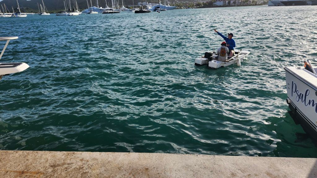One morning we went fishing in Simpson Bay. C had met a local who took us out in his tiny motor boat (his co-worker asked if we knew how to swim, lol). C caught 7 little barracuda which F kept for his lunch. But no tarpon that morning, not even a bite.
